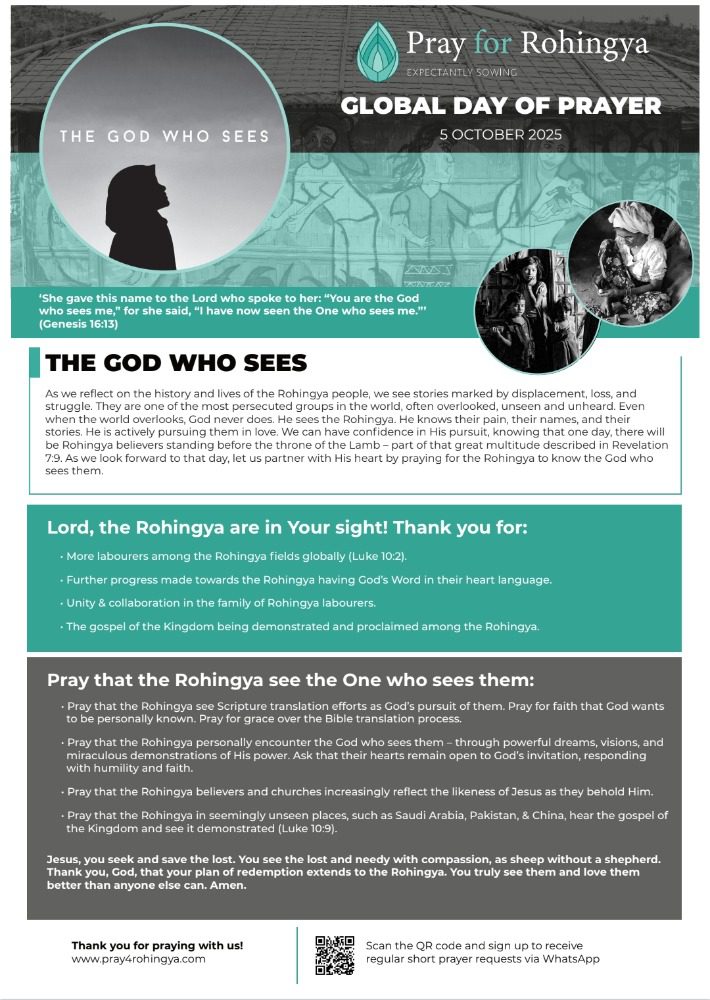 On the surface, there appears to be little hope and peace for the Rohingya, but God has not forgotten them; He has never stopped loving them. This year we focus our prayers on the theme of ‘the God who sees’.